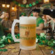 Get ready to celebrate March 17th in style with this hilarious St. Patrick's Day frosted glass beer mug! The design features a clever play on words, using "Irish" instead of "I wish," to read "Irish I Had Another Beer," complete with a classic beer pint graphic and festive green text. This sturdy, frosted stein is the perfect vessel for your green beer, stout, or lager. It makes an excellent gift for beer lovers, dads, boyfriends, or anyone who enjoys a good Irish pun and a cold drink at the pub or holiday party. Cheers to St. Paddy's!