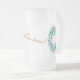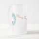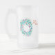 Des couronnes colorées sur un verre dépoli avec un joyeux "Joyeux Noël" apportent de la joie chaque fois qu'ils sont utilisés. L'art original est stylo et encre sur aquarelle. Au lieu d'une tasse à bière ordinaire, utilisez une tasse habillée pour Noël.
