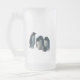 Enjoy your cold beverage in style with this emperor penguin family frosted glass mug the elegant semi transparent frosted finish creates a perfect icy backdrop for this heartwarming illustration of an emperor, penguin huddle and they're small chick whether you're sipping a chilled craft beer a soda or an iced tea this durable and unique glass brings a touch of polar wonder to your drinkware collection