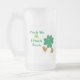 Pinch Me, I Pinch Back avec un shamrock ambulant sur une tasse de bière gelée. Célébrez la Saint-Patrick avec style.