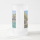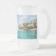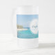 Une tasse gelée avec une belle photo représentant une station balnéaire tropicale. Jolie plage de sable blanc et d'eau bleue avec des paillotes, ce qui lui donne une ambiance insulaire tranquille. Un cercle blanc superposé avec votre nom et votre monogramme initial à l'intérieur.