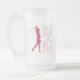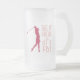 Citation de golfeur mignonne "Tee It High & Let it Fly!" Le design présente une police amusante de style milieu de siècle en rose combinée à une silhouette de golfeuse féminine également en rouge magenta. La couleur de la citation et de la golfeuse est personnalisable. La typographie et la golfeuse sont des conceptions graphiques vectorielles et peuvent être facilement transférées sur d'autres produits Zazzle, grands ou petits, et conserveront leur clarté sans pixellisation. Message avec des demandes de couleur personnalisée ou des questions. La tasse à bière en verre dépoli amusante est l'accessoire de bar parfait pour le dix-neuvième trou !