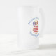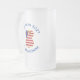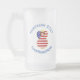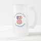 La tasse de bière en verre dépoli montre un ange aux cheveux rouges portant le drapeau des Etats-Unis d'Amérique pour la décoration de vacances ou Hanoukka. L'ange du drapeau américain est trouvé entouré de texte vous permettant d'ajouter votre propre texte ou de personnaliser avec un nom et l'année. La lettre est bleue.