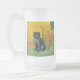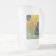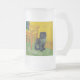 Mug de bière en verre dépoli avec un chat noir dans le style de Van Gogh! Ce chaton noir est assis par une chaise sur un sol vert contre un arrière - plan de décoration Starry Night. Un cadeau fabuleux pour les amoureux de les chats et les collectionneurs d'art hollandais !