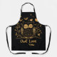 Tablier tout-en-dessus, conception de hibou en noir et or.