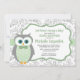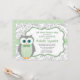 Un joli thème de chouette boisée garçon invitation baby shower en vert et gris avec arrière - plan et pois feuille d'aquarelle.
