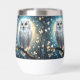 Sur Une Branche D'Arbre Avec La Pleine lune Derrière Est Une Chouette Blanche À Neige Avec Étincelle.