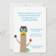 Invitation de fête d'anniversaire aux enfants colorés, avec des images d'une chouette assise, sur un tronc d'arbre. Texte Aquamarine prêt à être personnalisé pour la journée spéciale de votre enfant. Idéal pour les garçons comme pour les filles.