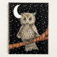 Ce planificateur est recouvert de noir d'étoiles blanches et d'un hibou brun assis sur une branche d'arbre avec de jolis yeux portant un collier bleu avec une lune blanche en croissant dans l'arrière - plan.
