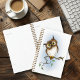 Une charmante illustration fantaisiste d'une chouette brune mignonne avec de grands yeux dorés perchée sur une branche feuillue sur un fond bleu doux. Ce design de chouette de dessin animé ludique et attachant est parfait pour les amoureux de la nature, les passionnés d'oiseaux et tous ceux qui aiment l'art mignon de la forêt.
