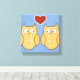 Parfait pour la chambre ou la salle de jeux pour enfants - conception de deux chouettes debout ensemble avec un coeur d'amour rouge entre eux sur un arrière - plan bleu ciel. Un dessin animé mignon et original inspiré par l'amour et l'amitié.