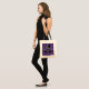 Custom Budget Fourre-tout a un joli dessin vectoriel d'un hibou de l'emo avec des cheveux noirs et un arc de crâne sur une branche et un arrière - plan motif de plaid violet.