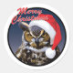 Chouette de Noël - Sticker rond classique, brillant. Contient l'écriture "Joyeux Noël". Joyeux Noël à tous !