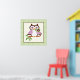 Chouette de printemps mignonne sur une affiche de branche, avec un chouette de printemps mignon en violet et brun foncé tenant une fleur dans son bec (bec) sur une branche et une bordure verte plaid. Un design adorable pour les amateurs de chouettes, parfait pour la décoration en pépinière. Oeuvre de Trina Clark.