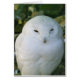 Chouette neige, grande chouette de la famille typique des chouettes Strigidae, assise au milieu des pierres