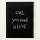 Caricature de croquis de hibou avec corps en forme de coeur et texte personnalisé.