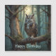 Cette carte magnétique d'anniversaire présente un joli hibou au fond de la forêt.