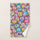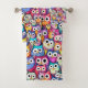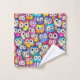 Une illustration amusante de gribouillis de visages de chouettes sauvages fantaisistes dans les tons bleu, violet, orange, jaune, vert et rose serrés les uns à côté des autres dans un collage sans couture, motif répétitif. Ce graphique d'aquarelle fantaisiste est le cadeau idéal pour les amoureux de la nature sauvage et des oiseaux nocturnes. Faites-vous plaisir avec cet accessoire de salle de bain sur mesure.
