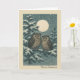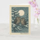 Deux chouettes japonaises perchées dans un arbre à hiver, avec un salut de Noël à chérir.
