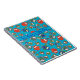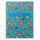 Un Carnet Spiral élégant à personnaliser, avec un motif de choux mignons en rouge, bleu, vert sur un arrière - plan turquoise. Le motif de hibou était un collage original peint à la main par Judy Adamson.