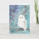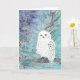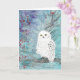 Une douce carte de vacances blanche de 5x7" sur le thème de l'hiver avec un hibou enneigé sur une branche d'arbre à berry rouge contre un ciel hivernal spectaculaire. L'image a un peu de peinture dorée pour créer un éclat de l'effet d'étoile. L'image originale a été peinte à la main avec des lignes de papier carbone, des aquarelles et de l'encre acrylique. Un accueil parfait pour les amoureux de la nature dans votre vie!