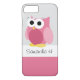 Personnalisé iPhone 7 coque avec un joli hibou rose illustré et personnalisé avec votre nom ou votre texte.
