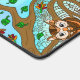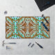 hibou turquoise et brun, arbres, branches, mandala nature feuille.