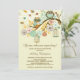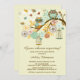 Invitation à la douche nuptiale amusante et fantaisiste avec des chouettes tawny, des cages d'oiseaux et des feuillages d'automne.