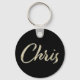 Un très beau porte-clés bouton personnalisé noble en lettrage blanc or pour Chris.