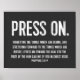 Poster de typographie en vers de la Bible avec Philippiens 3:13-14 avec les mots "PRESS ON." en gros caractères blancs rétro. Vous pouvez personnaliser cette affiche en noir et blanc.