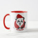 Christmas mug illustration of a head of cute panda bear with Santa's; great decoration for Christmas holidays, editable template design with custom field for your own text, illustrated by Radka Kavalcova