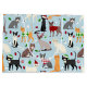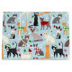 Chat blanc mignon, chat noir, chat tabby, chat persan, chat siamois et chat tuxedo habillés de tenues de vacances festives, chapeaux de Père Noël et chandails de Jacquard avec motif parsemé d'ornements de Noël.