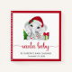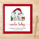 Livre d'or pour votre période de Noël bébé fille douche avec "Père Noël Baby" dans un script rouge élégant avec des swashes et une jolie aquarelle illustration d'un éléphant de petite fille avec un chapeau de Père Noël, un sucre de canne rouge et vert et des cadeaux. Ajoutez le nom et la date de la douche de la mère dans une simple typographie moderne.