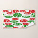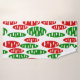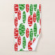 Cet ensemble de serviettes a un motif répétitif d'ovales en rouge et vert avec des ovales blancs éparpillés le tout sur un champ de blanc.