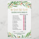 Ce jeu de "recherche de mots mariages" sur la couronne de noël est parfait pour une douche nuptiale d'hiver. Le devant de la carte de jeu comporte "il a dit qu'elle a dit", ce qui est un quiz amusant sur la mariée et le marié. Le verso de la carte contient un mot de recherche avec des mots et des phrases mariages. Le design comprend une couronne verte à l'aquarelle avec des baies rouges et une élégante police de parties scintillant en faux or. Personnalisez la carte de jeu avec le nom de la mariée et la date de la douche nuptiale. Remarque : Ce design ne comporte pas de véritable parties scintillant en or. C'est un graphisme de haute qualité fait pour ressembler à brillant or brillant.