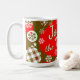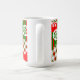 Enjoy your favorite hot drinks in festive style with this Christmas Mug, featuring a vibrant red and green striped background, white snowflakes, ornaments, and the joyful phrase Joy to the World.