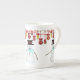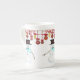 jolie porcelaine, bonne dimension effet brillant bien dans l'ensemble. Le motif et les couleurs sont réussis.Je trouve néanmoins dommage de ne pas occuper tout l'espace avc le motif car la partie rouge au dos de la tasse est trop présente et pas intéressante visuellement.