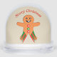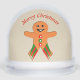 This awesome Christmas snow globe features a cute cartoon of a colorful gingerbread man. he has red and green buttons, a big smile on his face and red and green tassels around his legs ready for a Christmas party. There is custom text so you can include a message. The default message says Merry Christmas.
