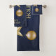 Christmas Party Golden Ornament Navy Blue Elegant Bath Towel Set. Unique, beautiful, stylish design. Easy to be personalized. Font style, size and colors can be changed. Matching items are available.