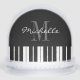 Christmas photo snow globe for piano player. Cute personalized gift idea for the Holidays. Make one for piano teacher, pianist, musicians, friends, family etc. Upload your own picture or image on the back. Elegant gift with black and white piano keys.