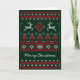 Carte de voeux de vacances avec illustration de Noël rétro avec un drôle de motif croisé "pull laid pull" avec rennes rouges et blancs, poinsettia, pins et motifs ethniques sur vert. Vous pouvez personnaliser cette carte avec du texte personnalisé ! Des timbres assortis et divers autres produits de Noël sont également disponibles.