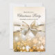 Design arrière - plan élégant en ivoire satiné avec profusion d'étoiles dorées et effet bling-bling en or et ivoire sur la partie inférieure de la carte. Joli arc en ivoire et or ajoute une touche finale à ce joli modèle d'invitation à la fête de Noël. Rapprochement de la conception de la carte. Tout le texte à l'avant et à l'arrière est prêt pour vous permettre de customiser avec vos informations d'invitation de partie.