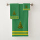 Christmas tree and three stripes on forest green. Elegant modern towel set. Image only on one side.