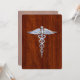 Le Chrome Symbolique Comme Caduceus Médicale Symbole design présenté ici sur un décor imprimé en bois acajou. Les serpents de la caducée sont conçus pour avoir l'air d'être en chrome. Bon pour une occasion de remise de diplômes, une déclaration pour votre profession, ou pour un cadeau avec ce look médical que vous recherchez. Voici une sélection de modèles de caduceus personnalisés disponibles sur des vêtements décontractés brodés fins pour tout le monde. Utilisez le lien "Demandez à ce concepteur" pour nous contacter avec vos demandes de design spécial ou pour obtenir de l'aide pour répondre à vos besoins de personnalisation.