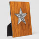 Un chromé argenté comme l'étoile applique sur un décor arrière - plan de style teck. Un cadeau marin moderne et osé. Utilisez le lien "Message" pour nous contacter avec vos demandes de design spécial ou pour obtenir de l'aide pour répondre à vos besoins de personnalisation.
