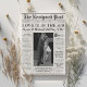 Cheers to Love - ce faire-part de mariage classique unique et tendance "The Newlysée Post" avec 3 photos en noir et blanc, des titres accrocheurs et des articles éditoriaux sur le thème Love Is In The Air, présente une chronologie ou un itinéraire spécial pour la journée de mariage avec des icônes d'infographie et de mignonnes mariages, une citation de couple, notre proposition d'article, le site web mariage et les instructions rsvp numérique. Personnalisez le libellé et remplacez-le par votre propre, téléchargez facilement vos photos, et même modifiez le placement des composants de conception plus loin, ou ajoutez votre code QR à l'arrière, en cliquant sur le bouton bleu "Editer à l'aide de l'outil de conception" au bas de la fenêtre "Personnaliser" ! Naviguez jusqu'à l'onglet "calques" dans la colonne de gauche de l'écran d'édition, sélectionnez le calque avant ou arrière, puis cliquez sur l'élément que vous souhaitez modifier et faites-le votre propre ♥ Les demandes et questions de conception personnalisées sont toujours les bienvenues - cliquez sur le bouton "message" ou envoyez un courriel à figandlilyco@gmail.com. Les photos ne sont destinées qu'à un espace réservé et doivent être remplacées. Le design est créé avec amour par Fig et Lily Studios, et le crédit photo du fiançailles de notre fille va à IG : @laurenmargaretphotography