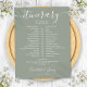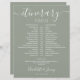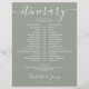 Cette chronologie élégante de l'itinéraire mariage gris et blanc peut être personnalisée avec vos détails mariages en lettres chic sur un arrière - plan vert sage. Conçu par Thisisnotme©