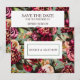 Annoncez votre mariage à la beauté florale intemporelle en utilisant ce Chrysanthème romantique enregistrez la carte de date. Conçue avec des fleurs luxuriantes en bordeaux, rougis et pêche, cette carte élégante est parfaite pour donner le ton de votre fête d'automne. Personnalisez avec vos noms, votre date de mariage et votre emplacement. Que vous planifiez une cérémonie de jardin romantique, un mariage de vignoble ou un événement sur le thème des chutes, cette carte vous présente votre grande journée dans le style. Correspond à la suite Romantique Chrysanthemum pour un ensemble de papeterie joliment cohésif.