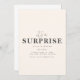 Ce modèle d'invitation à une fête surprise arbore un fond beige chaud qui donne un ton subtil et élégant à l'événement. Les mots "C'est une surprise !" sont affichés bien en vue dans une police de caractères script ludique, ajoutant un sentiment d'excitation et d'anticipation à l'invitation. Sous ce titre animé, il y a une zone désignée pour les détails de la fête, y compris la date, l'heure, le lieu et les instructions spéciales pour garder la surprise intacte. La conception globale trouve un équilibre parfait entre amusement et sophistication, ce qui en fait un choix idéal pour toute célébration surprise.