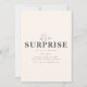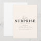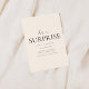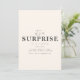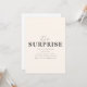 Ce modèle d'invitation à une fête surprise se vante d'un fond beige chaud qui donne un ton subtil et élégant à l'événement. Les mots "C'est une surprise !" sont affichés bien en vue dans une police de caractères script ludique, ajoutant un sentiment d'excitation et d'anticipation à l'invitation. Sous ce titre animé, il y a une zone désignée pour les détails de la fête, y compris la date, l'heure, le lieu et les instructions spéciales pour garder la surprise intacte. La conception globale trouve un équilibre parfait entre amusement et sophistication, ce qui en fait un choix idéal pour toute célébration surprise.